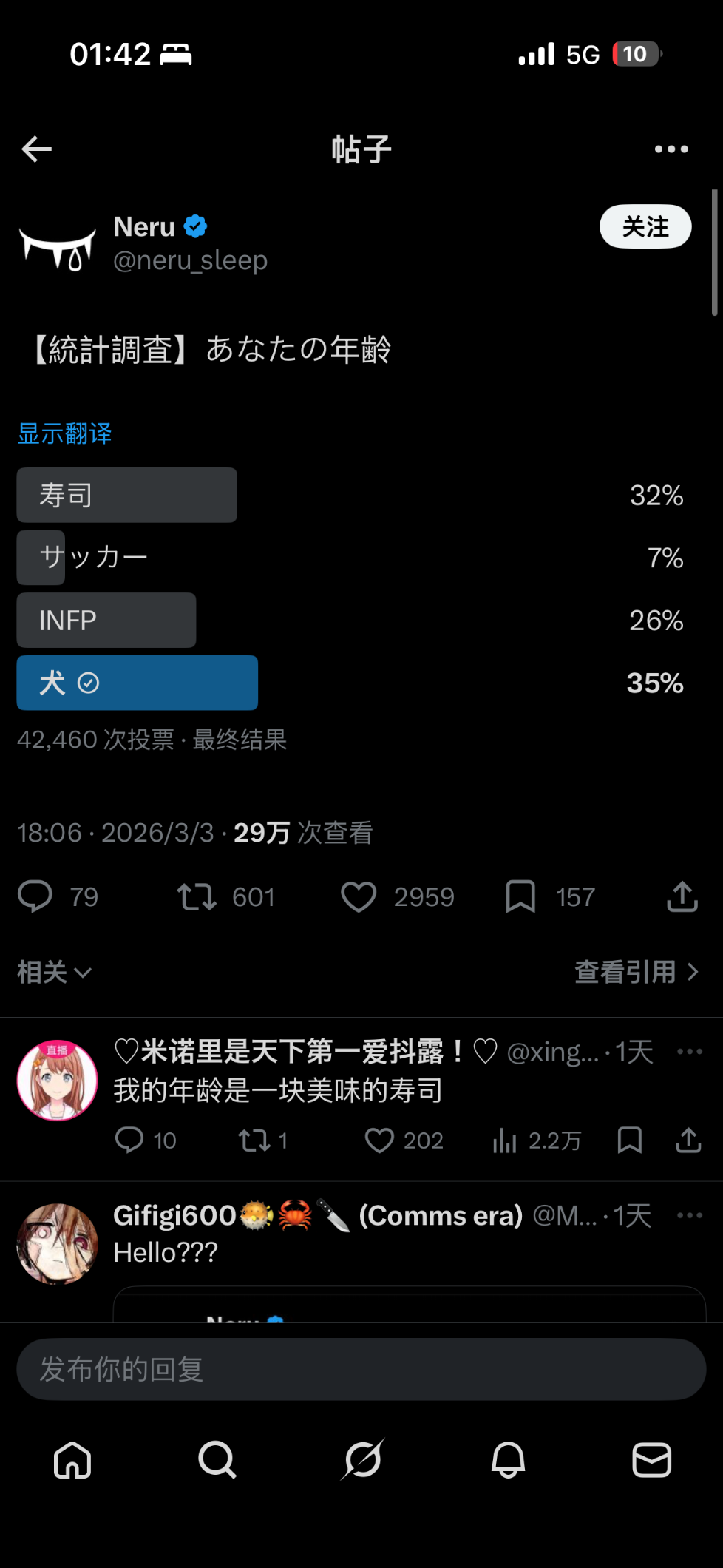 不知道neru每天在黑叉上都在发些什么疯 一会神代类梦男一会胡椒汽水毒唯一会希望全人类灭绝一会又是做出如图所示的神秘投票wwwww