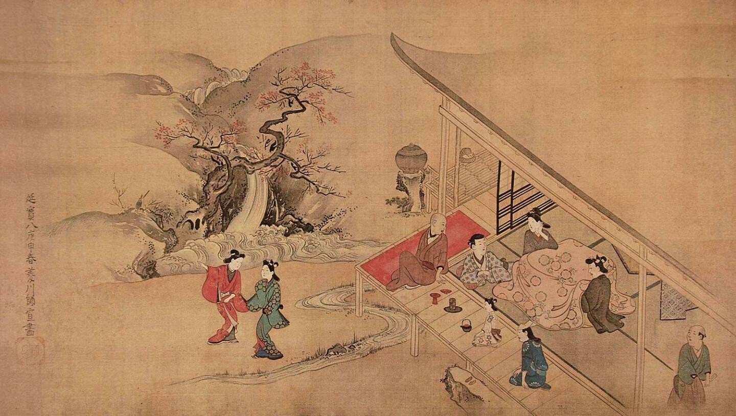 “作为贵族艺术的风俗画虽然在客观上也具有表现现实社会的性格,但作为平民艺术的新兴风俗画在主观上更注重对现实社会的自身体验,这是贵族艺术与平民艺术的本质区别所在。”因此,以浮世绘为主题的新的大和绘概念也由此确立,这一演变过程开始于宽永年间的风俗画。尽管当时的风景花鸟画还是新兴武家、公卿等上层社会的艺术,但表现下层社会生活的新兴风俗画渐次出现。这两种风俗画的差异首先表现在形态上,前者主要是障屏画,作为建筑的一部分,依然保持大型化;后者主要是挂轴,贴近平民日常生活,趋向小型化。其次从构图上看,前者人物与风景依然保持对等的比例关系,表现的是“人的现实”;后者则注重表现“现实的人”,将日常生活中的人物情趣作为画面主体,可以看出人的主体意识的自觉。“新兴风俗画在追求个人感情为主体的表现之时,也正是从贵族艺术向平民艺术的变迁。这是作为新兴样式的大和绘风俗画的主要特征。”