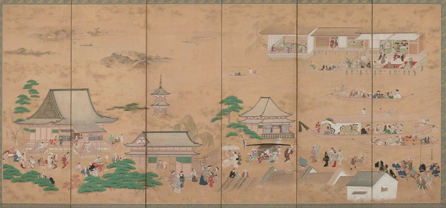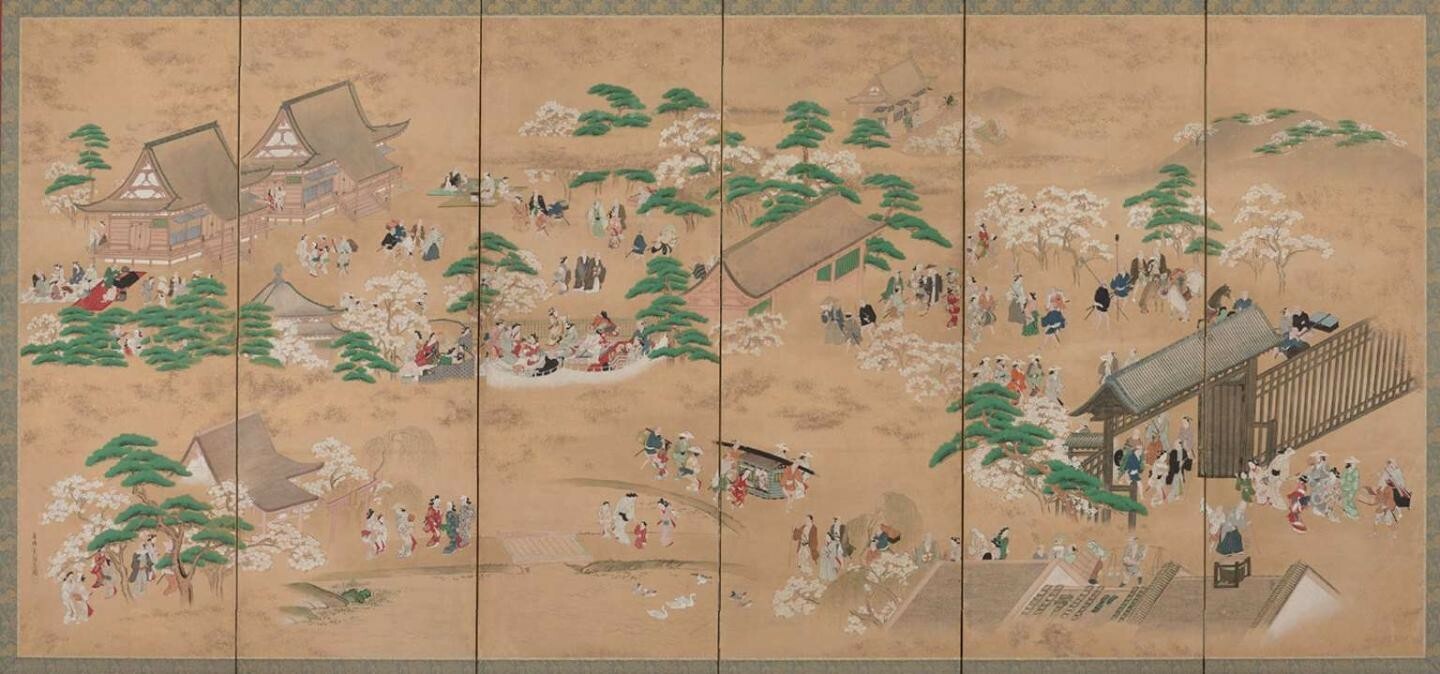 安土桃山时代是日本美术走向本土化的重要时期,一种完全不同的绘画样式逐渐从障屏画中发展出来,作为时代精神的反映,出现了主题各异、充满魅力的风俗画,这是由近代以来新兴的市民社会孕育出的新画种。室町时代至江户时代初期风俗画盛行,在日本绘画史上,这个时期的作品被通称为“近世初期风俗画”,以京都为中心展开。