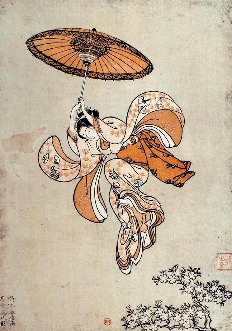 浮世绘是日本江户时代(1601—1867)流行于民间的木刻版画。17世纪后半叶,日本列岛在德川幕府的统治下进入太平盛世,普通百姓的经济能力大幅提高。急速发展的江户地区形成消费中心,培育了成熟的市民阶层和发达的商业文化。浮世绘就是出自民间画工手笔的大众艺术,以流畅的线条和鲜艳的色彩描绘日常生活、民俗风景,和普通百姓难得见到的歌舞伎明星、花魁美人和春宫魅惑,鲜活地表现了当时社会各阶层的生活百态和流行时尚,包罗万象,也被称为“江户绘”,可以说是日本民俗的百科全书。
