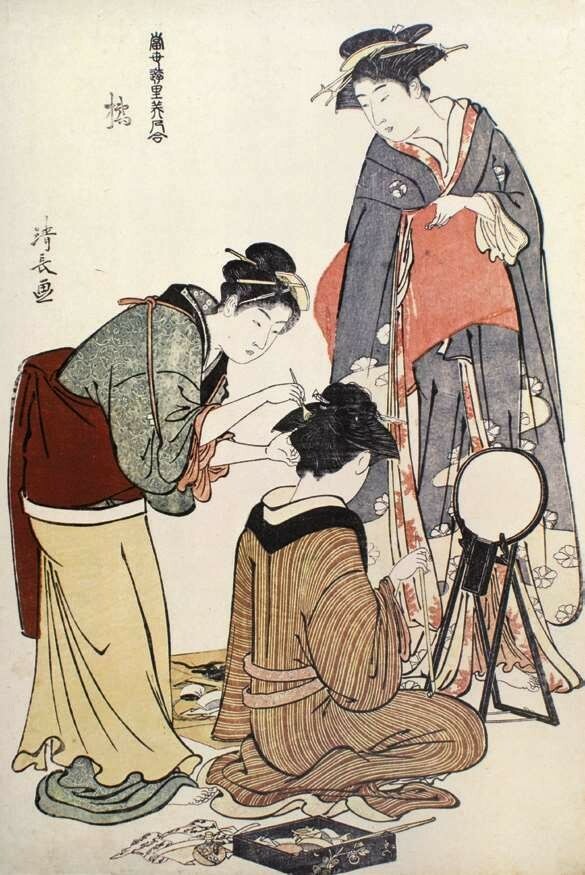 鸟居清长在创作盛期的18世纪80年代,将精力集中于浮世绘美人画的制作,出版了大量作品,至今可考的依然有500余幅。不同于铃木春信的青春少女,也迥异于流行的吉原花魁美人,鸟居清长笔下呈现的大多是江户市民生活和娱乐景象。