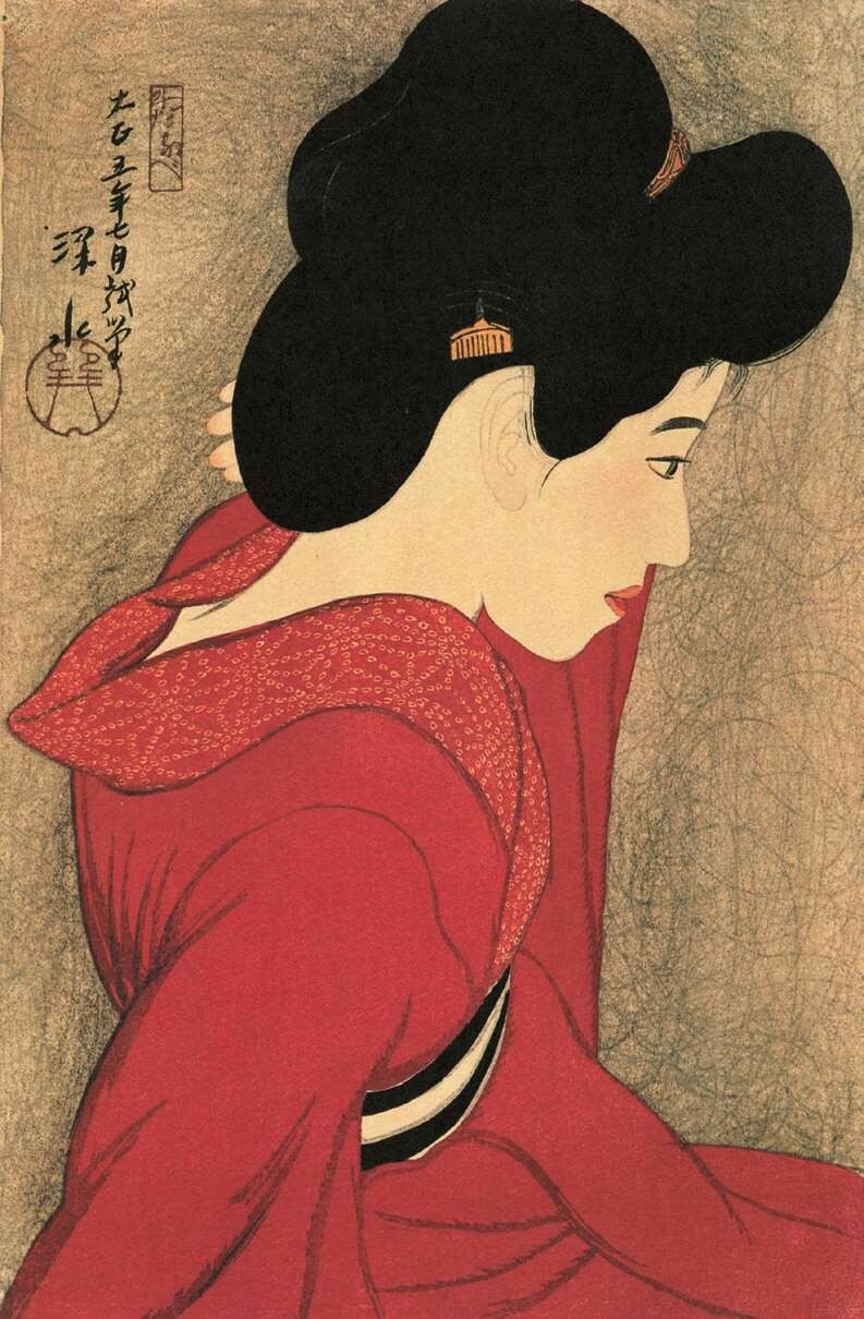 日本人在接受了外来儒教与佛教文明之后,也未脱胎换骨,远古文化的痕迹依然存在,固有的道德观念并没有改变。禁欲主义的佛教在日本也被大加“还俗”,将对“来世”的愿景变为“今世”的及时行乐。日本的原生文化更忠实于内心的自然情感,这是日本文化中“情的与共感的”性格。“浮世”一词反映了享乐人生的社会现实,浮世绘美人画和歌舞伎画所描绘的就是江户地区主要游乐场所的人物,表情与气氛都流露出日本人开放的性意识。