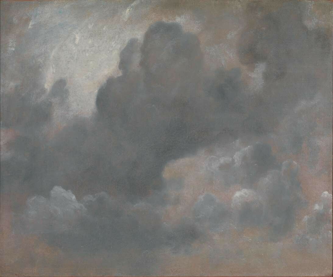 康斯太勃尔画中的云并不阴沉忧郁,而是美丽动人、充满个性。他画的是如波浪般翻滚的云景,有如音乐节上的嬉皮士一样,充满喜悦,无忧无虑。这就像坐在一个熟人身边,你过去总觉得他是一个极其讨厌的人,却发现他是屋里最好的同伴。这是一种奇特的体验:看到如此熟悉的事物——一片多云的天空,与此同时又仿若初见——一幅除了多云的天空别无其他的画。自那以后,我看待世界的方式便大为改观。康斯太勃尔的云改变了我与阴天的关系,曾经的沉闷无比变成了美妙绝伦。如今我抬头望向多云的天空,不再闷闷不乐,而是充满好奇地观看大自然千变万化的“天空雕塑”展。