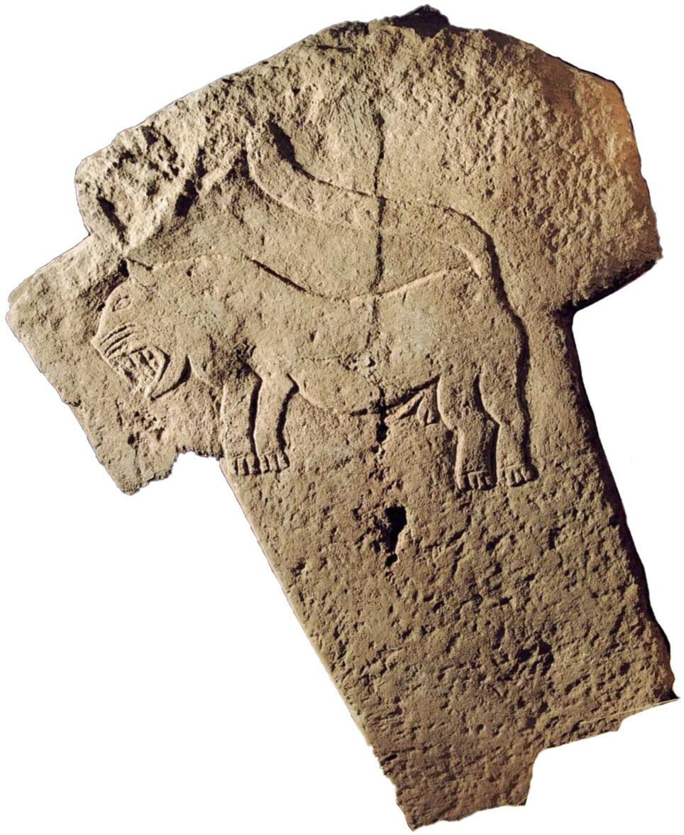 美索不达米亚夜之女王浮雕,约公元前1775年,古巴比伦时期。其中描绘的女性人物头戴尖帽,手持短棍及圆环,可能象征着审判。这位女神最有可能是伊什塔尔女神,她的形象往往与狮子有关,这幅作品中即有脚踩两头狮子的场景;这位女神也有可能是伊什塔尔的姐姐,冥界女王埃列什基伽勒。无论哪种推论都暗示该浮雕与伊什塔尔女神降临冥界的故事有关