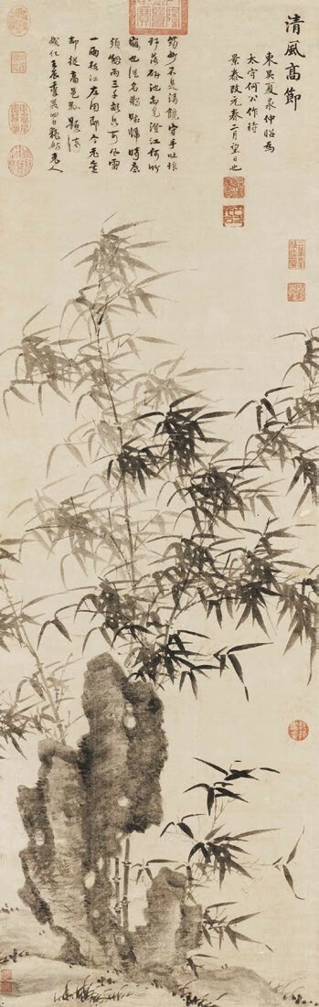 “风竹”则有所不同,在寄托书法趣味的同时,还担负了使“满纸风动”的任务——画中之竹不但自身应该具备美学价值,而且需要以其动态表达无形空气的流动,使整个画面富有生意。