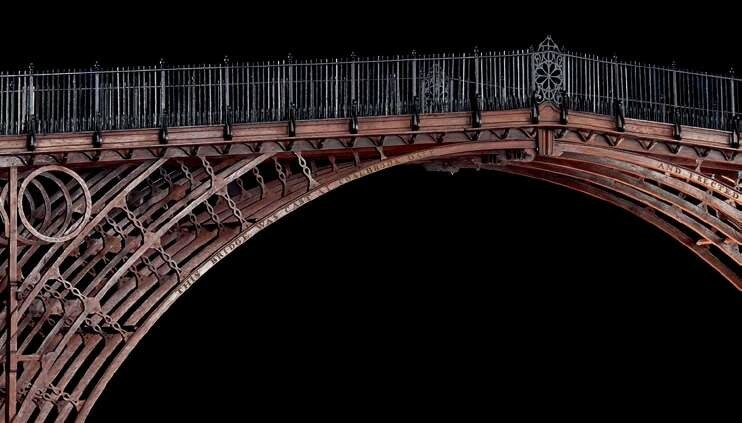 靠近河流固然有其优势,但塞文河也构成了一个障碍:人和货物必须反复过河,而距离煤溪谷最近的两座桥梁一座在上游2英里多的比尔德沃斯(Buildwas),另一座在下游9英里多的布里奇诺斯(Bridgnorth)。到了18世纪50年代,铁产量增加,修建新的桥梁势在必行——亚伯拉罕·达比三世(Abraham Darby III)受命监督桥梁的建造,他是焦炭冶炼铁先驱达比的孙子,这时已经成为煤溪谷铁厂的厂长。规划是修建一座单跨桥,原始构想和设计由托马斯·法诺尔斯·普里查德(Thomas Farnolls Pritchard)提供,铸造厂工头和模具师托马斯·格雷戈里(Thomas Gregory)完成了细节部分。大桥将完全由铁建造,这是一项轰动一时的技术革新。1776年,议会通过一条法案批准了这座新桥的建设,贝德拉姆熔炉也进行了扩建,以便能够按照生产桥肋所需的规模进行铸造。大桥的建设工程于同年开始,并于1779年竣工。最终的设计采用了圬工桥的结构(有一个可以承重的拱形结构),但铁制部件的连接方式仿照了木结构的榫眼和榫接头、燕尾榫和楔子。毫无疑问,在使用这种新材料时,格雷戈里坚持使用了经过试验和测试的方法。但即便如此,也没有人可以确定哪些部分是必需的,最终格雷戈里制造的一些部件在后来的铁桥建造者看来是过于复杂且不必要的。
