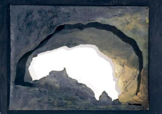 剧中的另一个场景聚于巴克斯顿(Buxton)边缘的一个石灰岩洞——普尔山洞(Poole's Hole),在这里,一位魔术师将黑暗的洞穴变成了灯火通明的宫殿和花园。正如我们在第一章中所看到的,在启蒙运动时期,黑暗和光明具有多种含义——德·卢泰尔堡兼收并蓄,他对其中的许多神秘含义产生了兴趣。他研究了被称为卡巴拉(Kabbalah)的古代希伯来学派,以及《圣经》预言和炼金术。在1787年至1789年间,他短暂地离开了英国,去追随化名为亚历山德罗·卡廖斯特罗伯爵(Count Alessandro Cagliostro)的声名狼藉的神秘学“魔术师”。回国后,他开始了以催眠术(mesmerism)为基础的治疗实践,最终在1800年左右重返画坛。德·卢泰尔堡的私人收藏十分壮观,其中包括玫瑰十字会(Rosicrucian)、斯维登堡派(Swedenborgian)和伯麦主义(Behmenist)宗教团体成员的作品,他还加入了伯麦主义团体以及伦敦的共济会。他们都受到了德国路德宗神秘主义者雅各布·伯麦(Jakob Boehme)思想的影响,伯麦认为光是神之爱的体现,而人的生命则是从黑暗到光明、从圣父到圣灵永无止境的循环。光是德·卢泰尔堡所有作品的关键元素,无论是绘画还是戏剧舞台,以月光或工业火焰的形式出现。