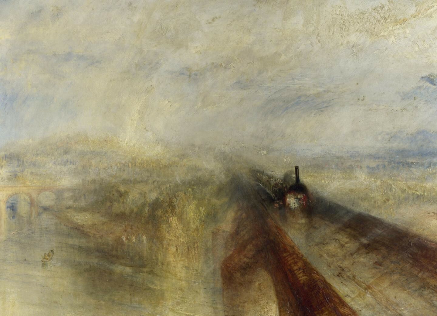 J. M. W. 透纳的《雨、蒸汽与速度》于1844年首次展出,是当时表现铁路时代的最耐人寻味的作品。(如图)