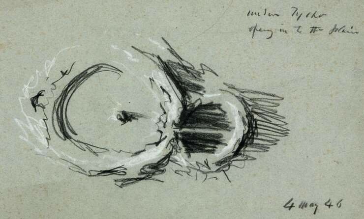当内史密斯在1874年的著作《月球》中发表这张月球图时,这已经不是他最精彩的作品了。这幅图的摄影复制品和一幅线条图放在对开页上并排展示,读者可以通过这两幅图识别阴影和光照面的特征。但这本书还包含了更加与众不同且具有开创性的摄影底片,以特写镜头展示了月球的具体特征,细节之丰富是当时的天文摄影无法企及的。它们让读者真切地感受到了月球上崎岖不平、遍布凹痕的环境。