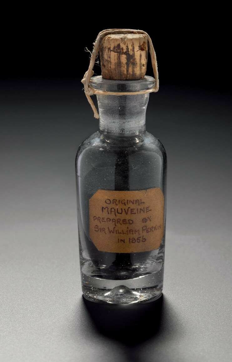 这瓶淡紫色染料样品是由威廉·珀金制备的。(p1)