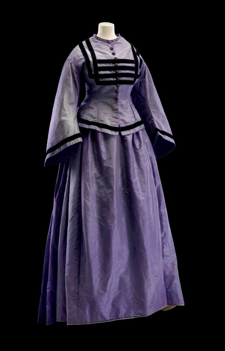 在欧仁妮皇后和维多利亚女王将珀金发明的淡紫色引入时尚圈之后,这种颜色就用在了外套和裙子这样的衣服上。