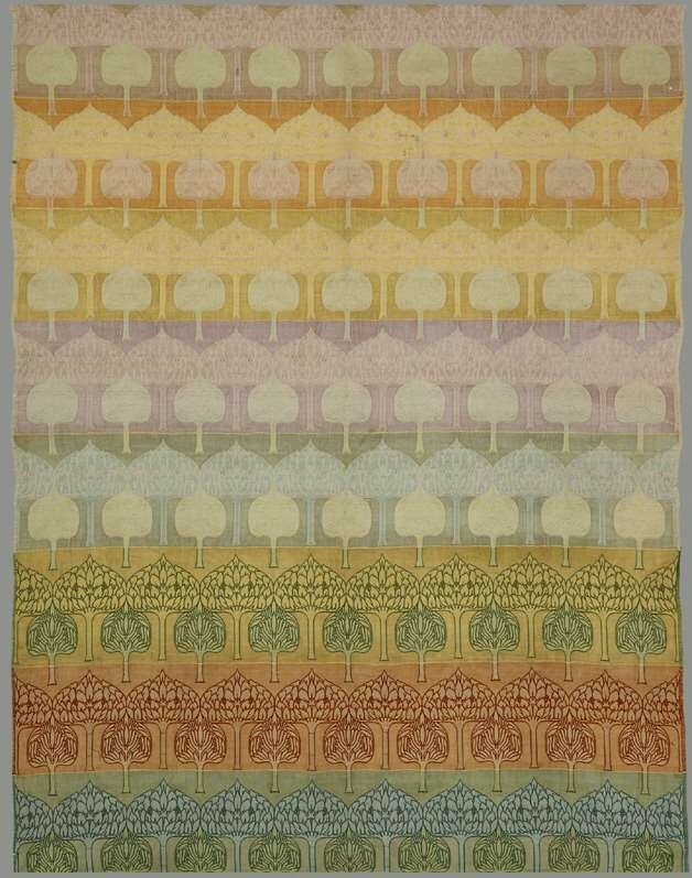 C. F. A. 沃伊齐(C. F. A. Voysey)是工艺美术运动(Arts and Crafts movement)中最杰出、最具影响力的设计师之一。他排斥合成染料的刺目颜色,仍然使用清新明亮的色彩进行鲜明的组合。沃伊齐的创作灵感来自大自然,他追求和谐的色调、简洁明快的线条。他的目标是“将色彩感从病态的绝望提升到光明和充满希望的快乐”——这一目标直到20世纪仍在产生影响。