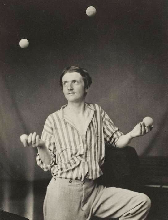 奥斯卡·古斯塔夫·雷兰德在1865年前后拍摄的《杂耍者》中,在已有的画面上加入了抛向空中的小球。(如图)