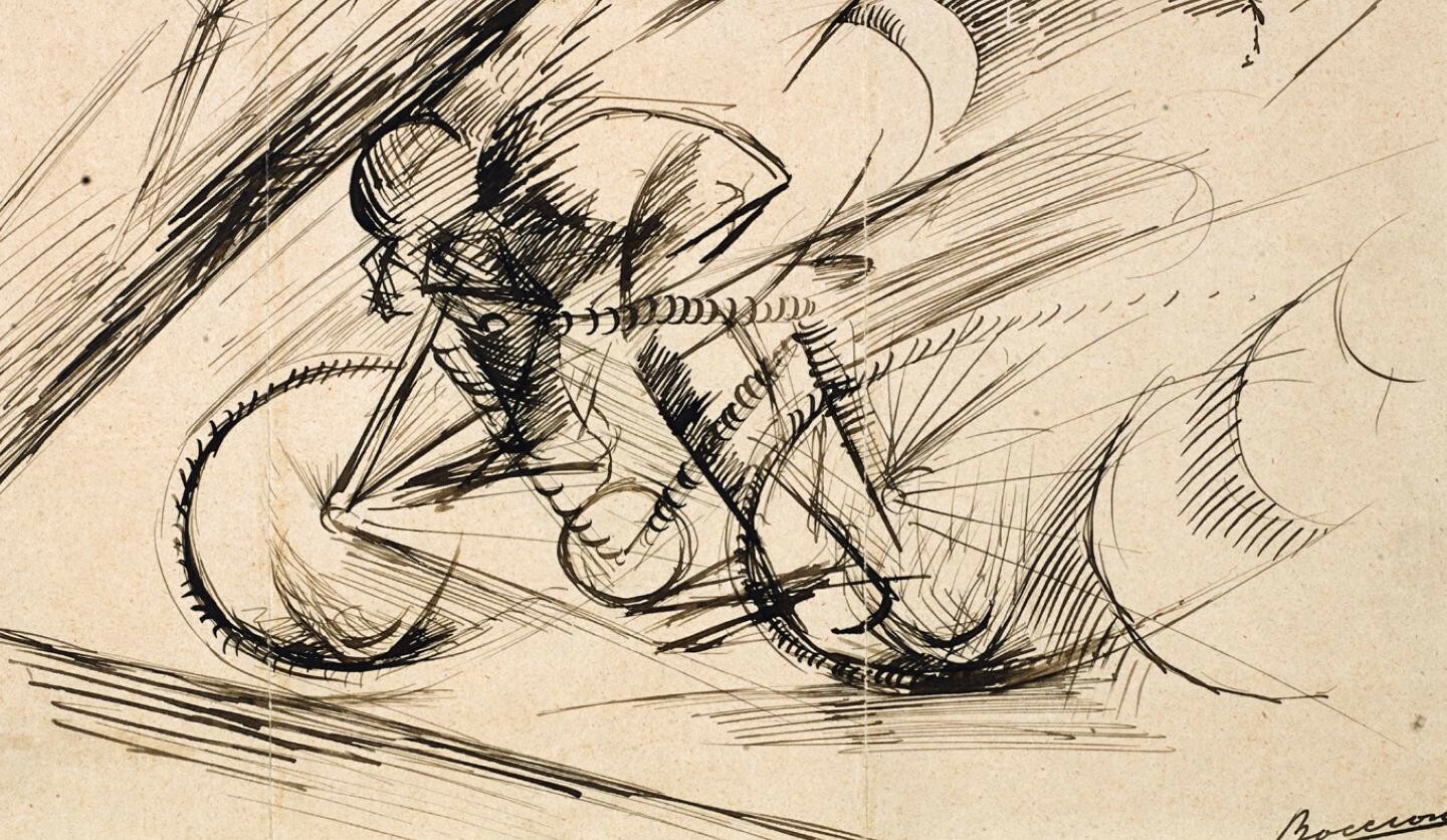 在《骑自行车者的动态》中,翁贝托·波丘尼利用线条传达了速度和运动在时间和空间中的变化。