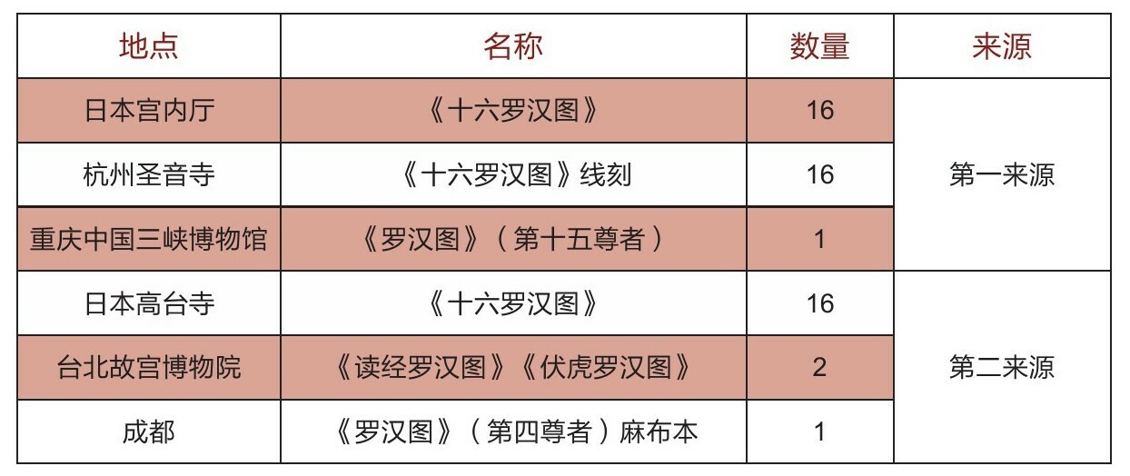 《十六罗汉图》主要传本分类表