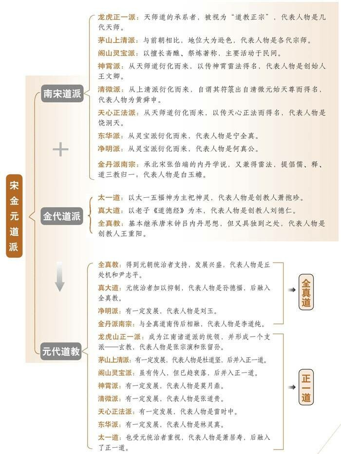 从元代末年至今,道教大致可分为正一道和全真道两大派别,也就是符箓和金丹两大道派。