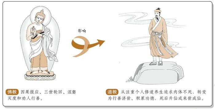 汉魏之世,佛道相依相杂,好似一家,但到魏晋南北朝之时,道教的楼观派宣扬老子西升及化胡之说,使佛道之间矛盾激化。在北朝,佛道之间的矛盾,更有政治上的原因,先后出现北魏太武帝和北周武帝的两次大规模的灭佛事件,使道教有了较大发展,尤其是楼观派,更是处于鼎盛期。与北朝相比,南朝的佛道之争,只是义理上的争辩,没有诉诸武力。而且,在佛道二教激烈斗争的同时,也有人持调和论。