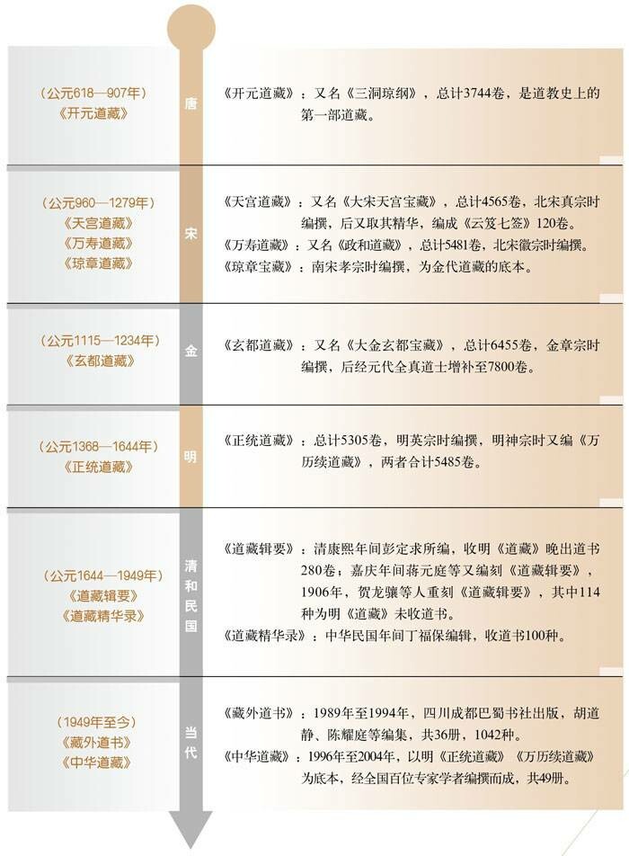 道藏自唐玄宗起修撰,后又历经宋、金、明、清、民国、当代的修撰,历史悠久,为道教的发展作出了突出贡献。(图1)