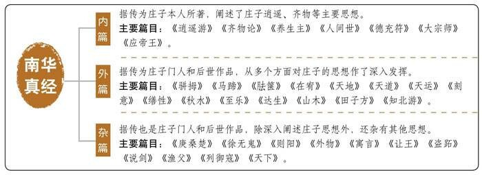 《南华真经》即《庄子》,唐玄宗时,追尊庄子为南华真人,所以《庄子》也被尊为《南华真经》。现代流行版本是晋郭象注的《庄子》三十三篇,分内、外、杂三篇,一般认为内篇是庄子本人所著,外、杂篇可能掺有其门人和后世作品。
