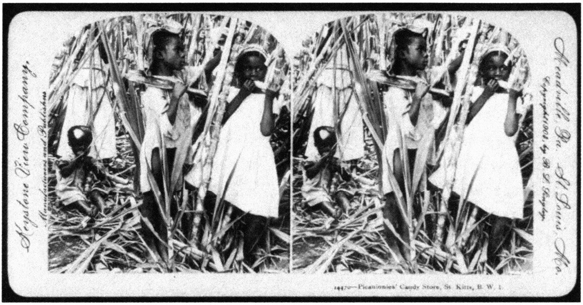 图5 1903年,黑人儿童在甘蔗地里认真地吮吸甘蔗。这幅图名为《黑人小孩的糖果铺,圣基茨岛,英属西印度群岛》。
