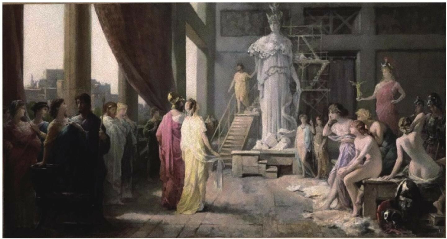 《伯利克里和阿斯帕西娅参观菲狄亚斯工作室》勒鲁克斯 油画