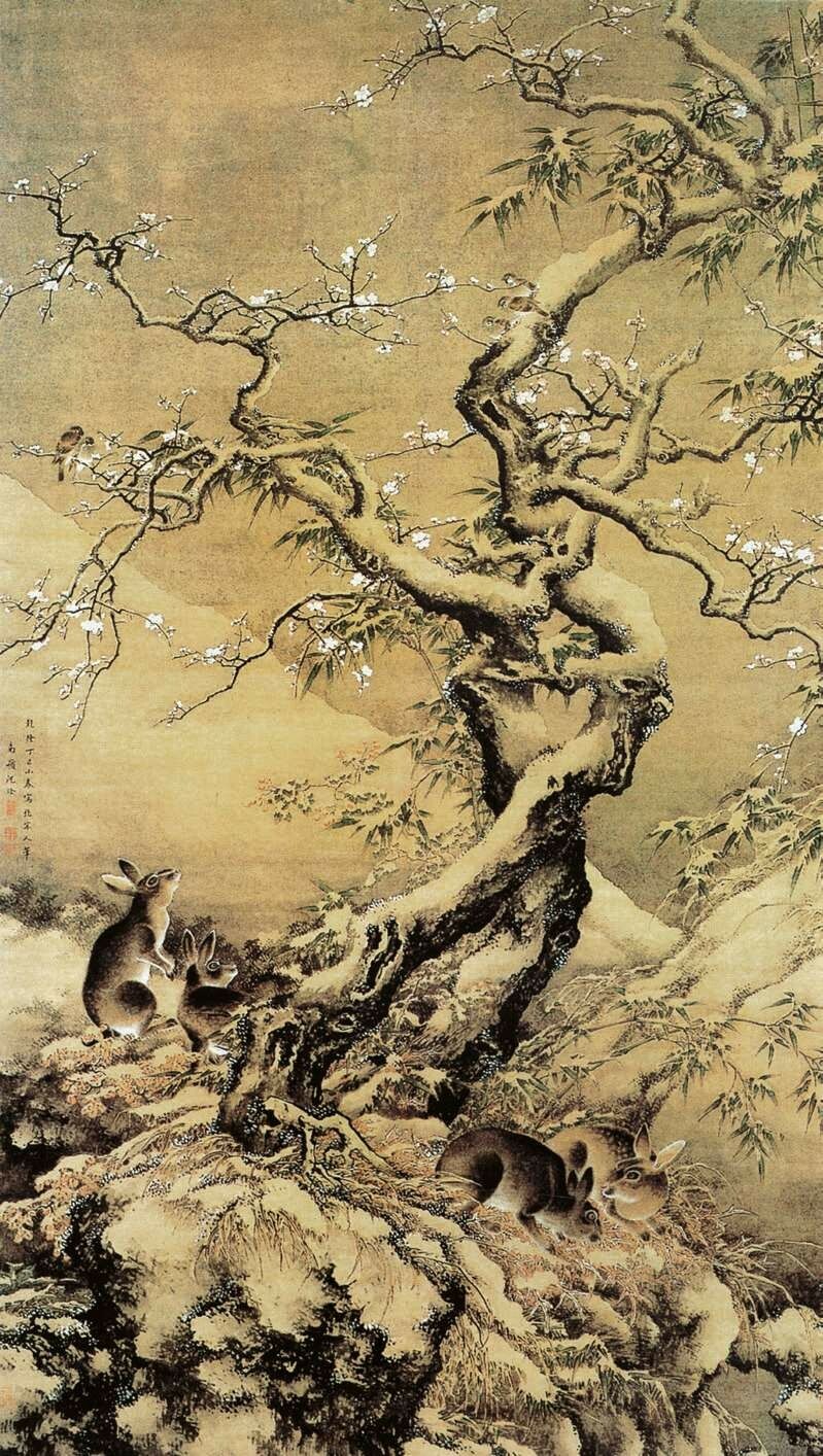 在沈南苹的影响下,以京都民间画师圆山应举(1733—1795)为代表的“京都画派”也提倡重视“写生”的绘画主张,结合西方绘画的“写实”与日本传统的装饰性,开创了新的日本画风貌。圆山应举以细致的观察为基础的《昆虫写生图》(四帖)甚至接近于动物标本的真实,代表作《雪松图屏风》将西方的写实与东方的写意融为一体,画面既有物象的浑厚又具意境的空灵。另一位京都画师伊藤若冲(1716—1800),直接临摹过包括沈南苹作品在内的许多明清花鸟画,他的作品以各种动植物和花鸟鱼虫为主要题材,数量和种类均空前丰富,在日本绘画史上独树一帜。在技法上以精细写实和鲜艳色彩见长,兼具中国的工笔魅力和日本的装饰风采。