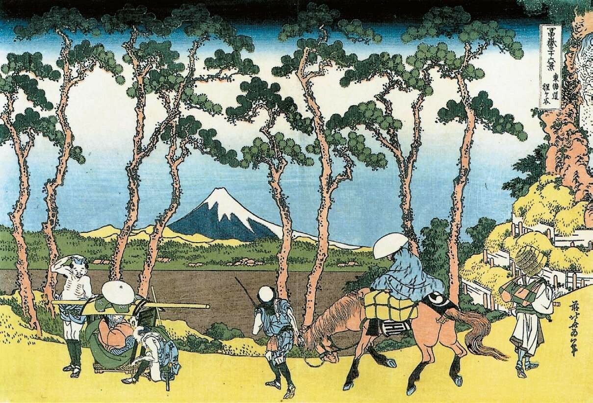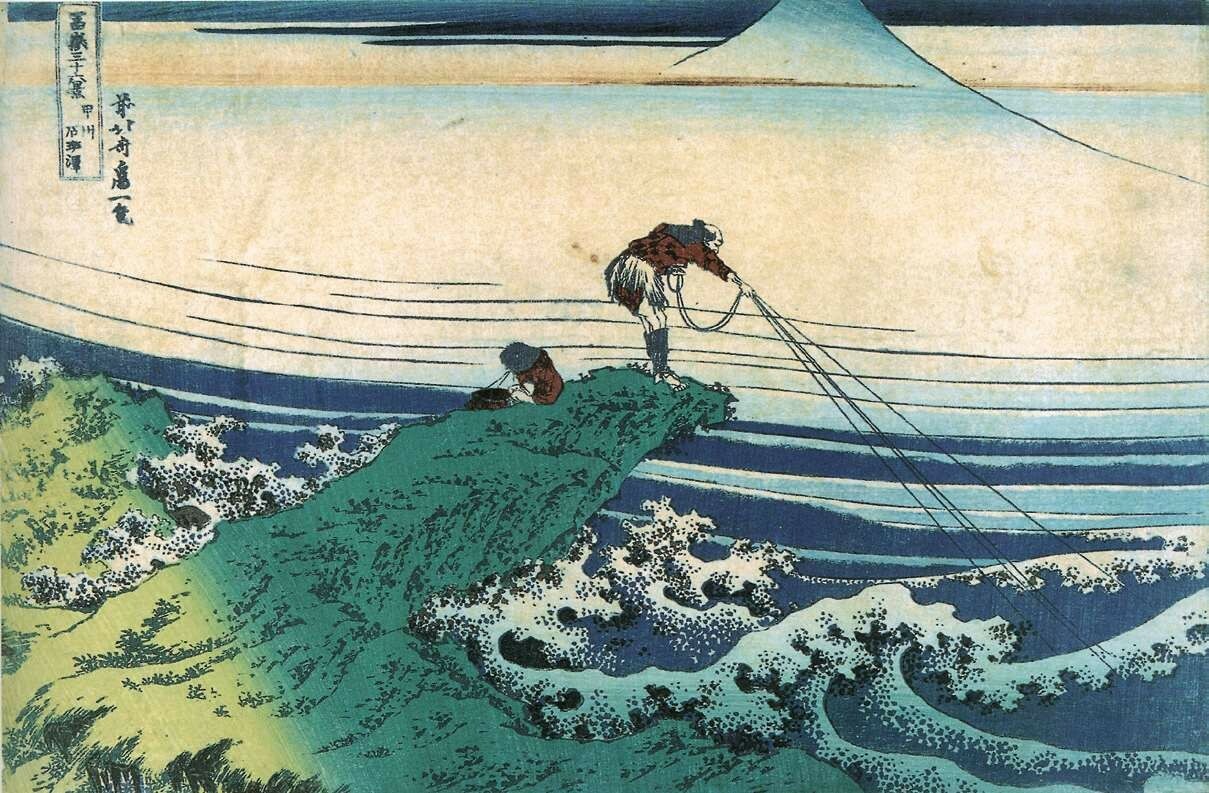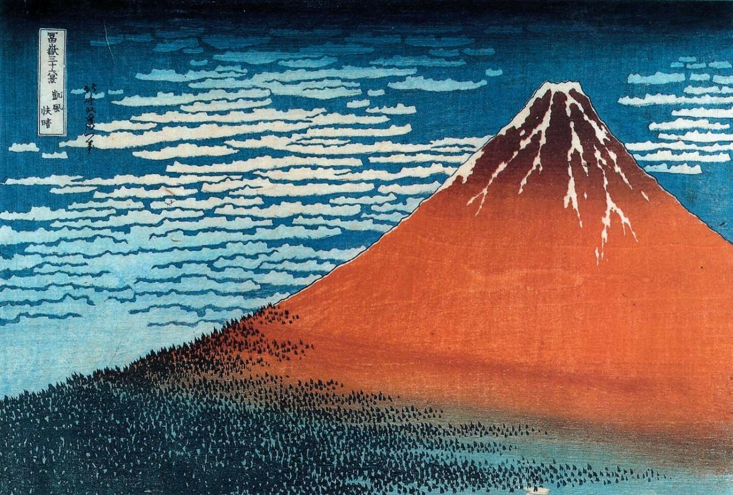 葛饰北斋在19世纪30年代(天宝年间)达到他绘画生涯的巅峰,此时他已年逾七旬,一生中最精彩的风景版画系列《富岳三十六景》就出现在这个时期,为此他花费了5年时间。这样以不同位置、不同角度、不同时间、不同季节全方位地表现同一主题的手法,开拓了浮世绘风景画的新领域。日本人自古以来普遍对富士山抱有一种近乎宗教崇拜般的心理,江户时代中期出现了类似新宗教的组织,称为“富士讲”,信徒们经常组织攀登富士山的朝拜活动,也带有旅行游览的因素。显然这种情绪也影响着葛饰北斋,他的许多作品都以富士山为题材。