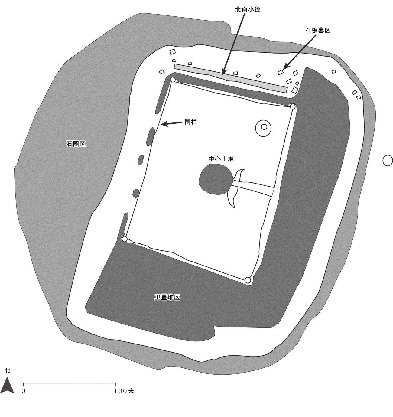 从大约公元前1500年开始,在蒙古高原的西部和中部涌现出一种全新的纪念建筑群,它的中心是一个土堆,围以圆形或长方形的石栏,在石栏外还有不少小型的土堆。它们被称为赫列克苏尔。在蒙古高原中北部的呼尼河谷出土的乌特·布拉根遗址,是最大型的赫列克苏尔遗址之一。(见图5.5)单排的石墙围起一片正方形的土地,形成了它的中央广场,石墙每一边接近400米长,四角各有一个土堆;在这个赫列克苏尔的正中,则是一座5米高的中心土堆。从各方面都最令人印象深刻的是集中在它的东侧和南侧的1700个卫星堆;建造它们的过程可能自中心土堆建成后又延续了好几百年。到目前为止,人们只发掘出了7座卫星堆,每一座之中都出土了马的头部和颈椎上半部分的残骸,但没有发现人造手工物品。这些卫星堆还有一些其他特点,例如横卧的大石块排列在一起,可能被用作小径。另有所谓的石板墓,部分墓中埋葬着人类和动物骨骸的混合物,部分墓中只埋葬了动物,还有部分里面什么都没有。很可能单凭一个部落自身的力量无法建造大型赫列克苏尔,而是需要集合许多部落的劳动力。在赫列克苏尔的帮助下,这个更大的群体获得了认同并发展壮大:在建造纪念建筑的过程中,这个更大的群体创造了自身。