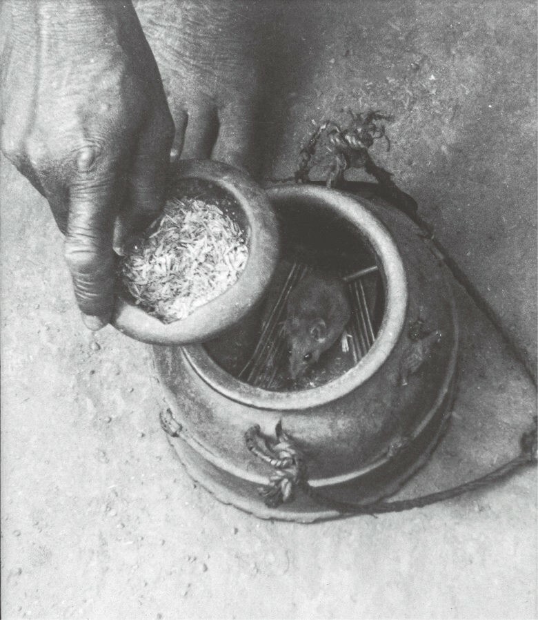 在非洲广泛流传的占卜试图预测未来;这种预测历来是十分困难的,但仍发展出了各种高度发达的方法。像阿赞德人的毒药神谕这类占卜,尝试的则是探究过去。我的最后一个例子是科特迪瓦的鲍勒族和古罗族的老鼠神谕容器。它的外部装饰中有一根豪猪的尾巴和红色的小羚羊角——二者都是安静的夜行性动物(这也是常常与占卜联系在一起的动物的特征)。人们相信老鼠“从不说谎”,而且它们能听到“大地的声音”。