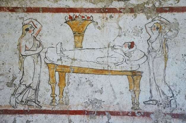 图7.19 帕埃斯图姆墓葬壁画中的吊丧场面