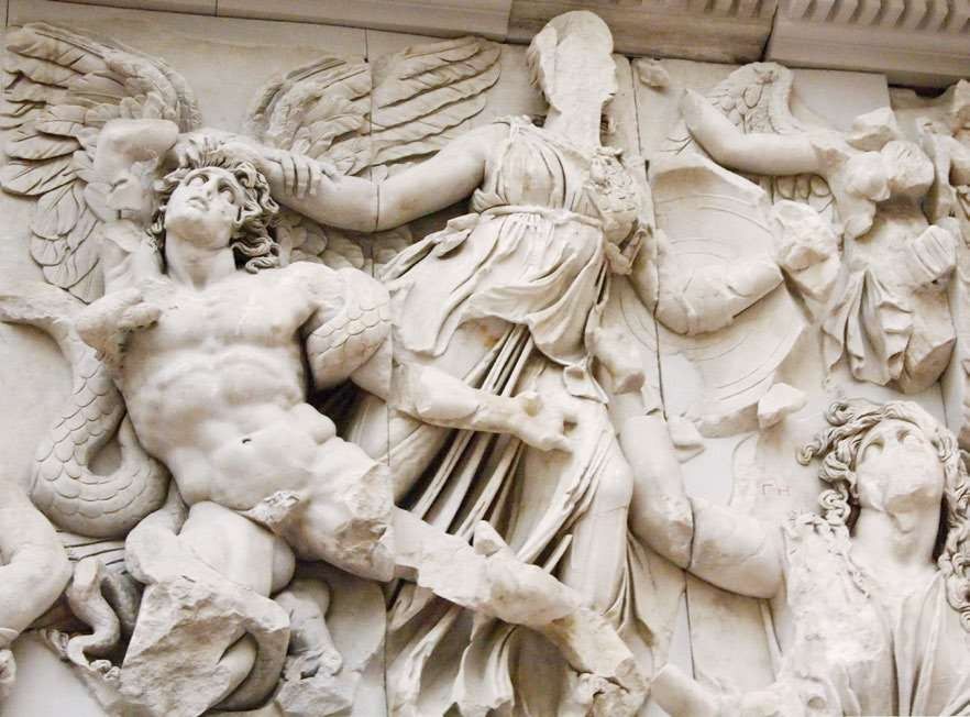 图8.4 《宙斯祭坛》(局部),公元前2世纪,原位于土耳其佩加蒙,柏林博物馆岛佩加蒙博物馆藏