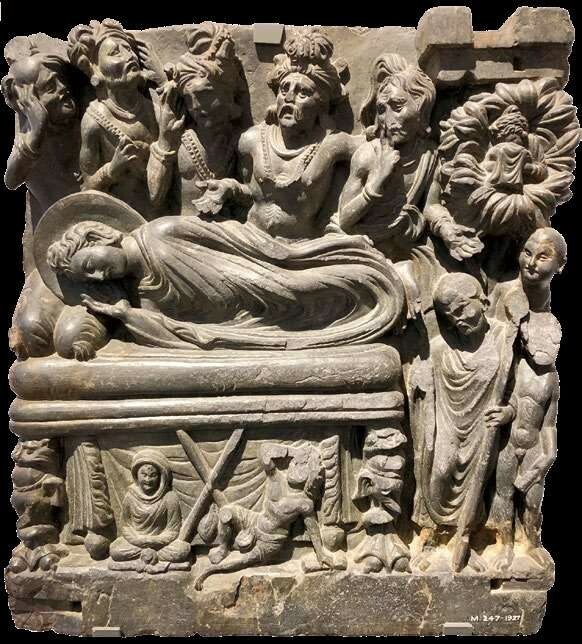 图8.6 犍陀罗涅槃石雕,2世纪,伦敦维多利亚与艾尔伯特博物馆藏