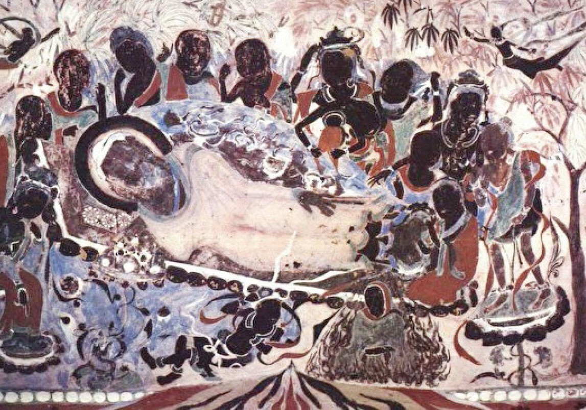 图8.12 涅槃变,莫高窟第280窟壁画,隋代