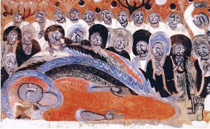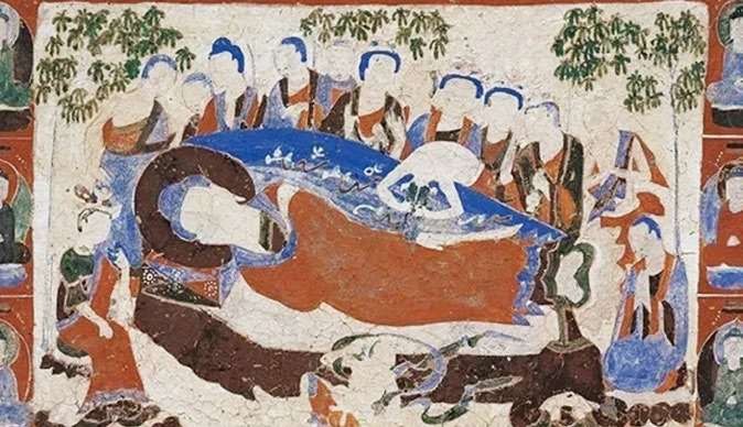 图8.11 涅槃变,莫高窟第295窟壁画,隋代