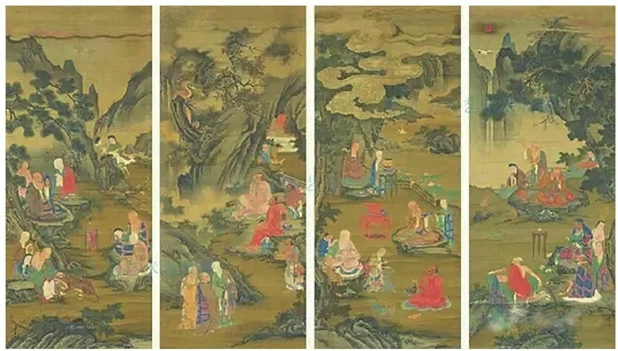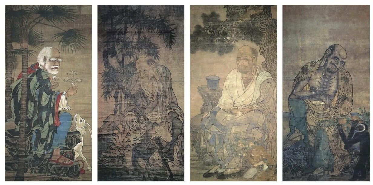图90 高台寺本《十六罗汉图》中带有动物的四罗汉图