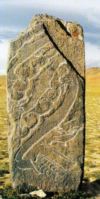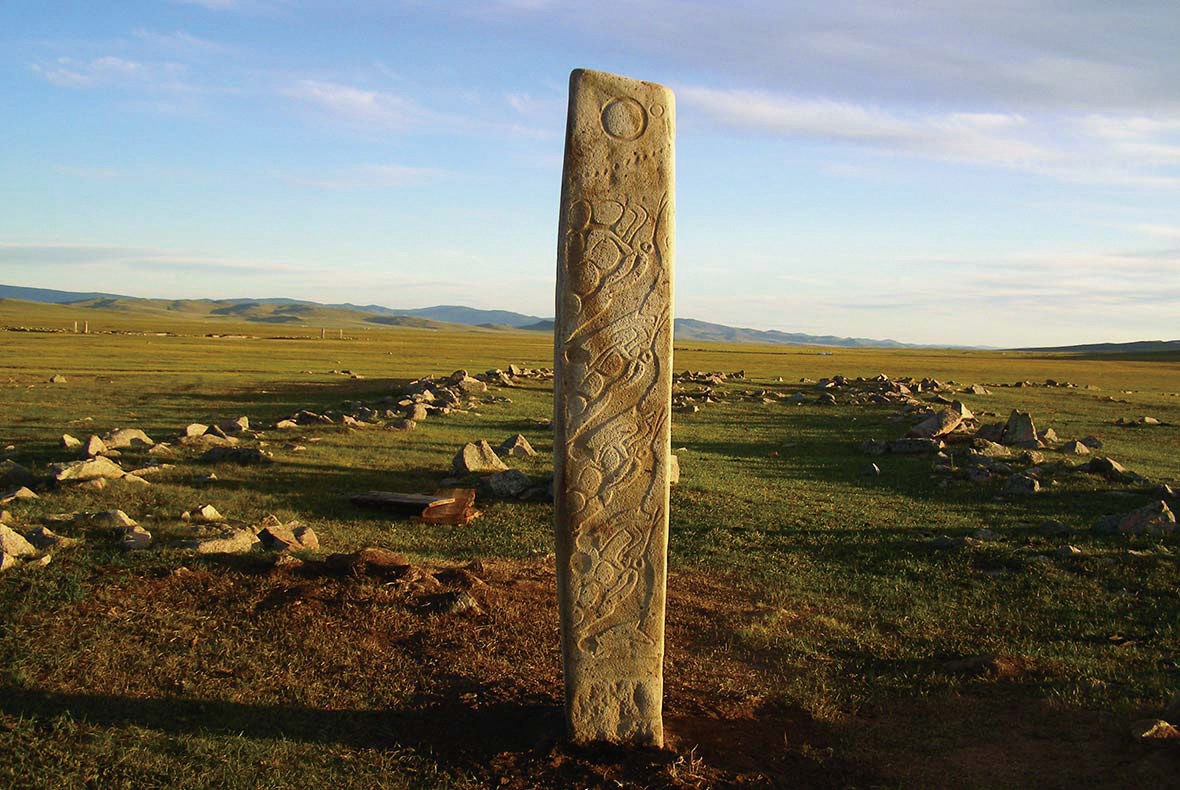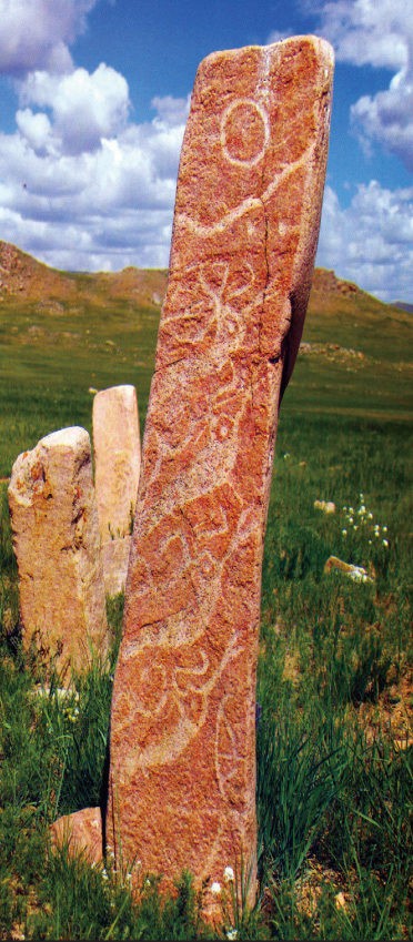 各种不同形状纹样的鹿石。鹿石,又称驯鹿石,雕刻着图案与符号的古代巨石。驯鹿在几乎所有的鹿石中都占有突出的地位。早期的石头上只有非常简单的驯鹿形象,随着时间的推移,设计的细节越来越多,驯鹿被描绘成在空中飞行,而不是仅仅在陆地上奔跑。考古学家已经在欧亚大陆发现了1500多块鹿石