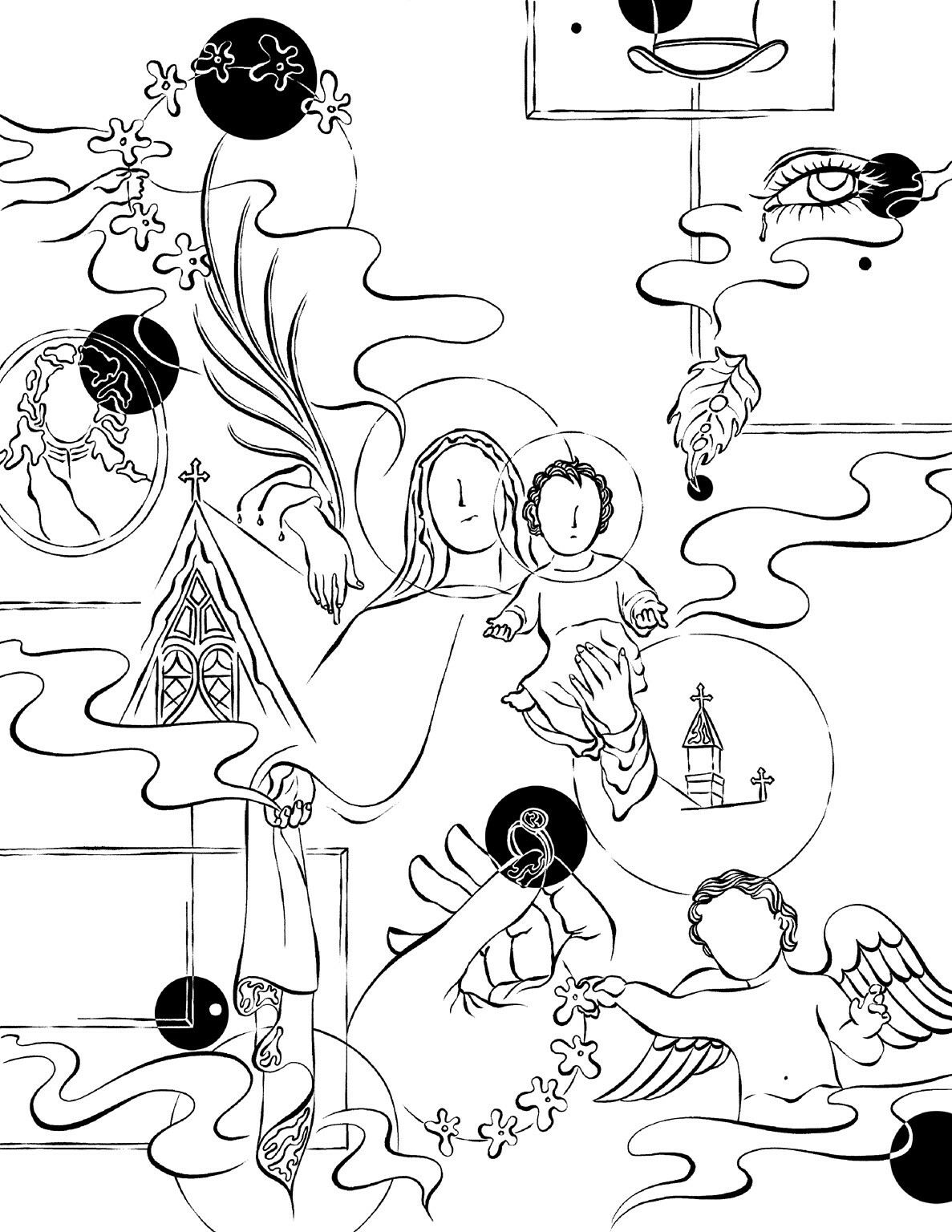 一天下午,弗朗西斯科·戈雅再度与魂魄相逢。他正走过一条店铺林立的街道。他一边走,一边琢磨着怎么把俗语说的“活得越久罪孽越深”用绘画表现出来。这时,他发现一只带有一滴黄色颜料的袖子转过街角。他可以抄小路轻易地跟上它。小路空荡荡的,没有什么能遮挡他的视线,要是你的眼睛有能力穿透一栋房子,或是越过一道墙……但是,戈雅知道,他自己并没有转过街角,既然不在那里,一只转过街角、带有黄颜色的袖子也不可能被你看到。然而,他的确是看见了。