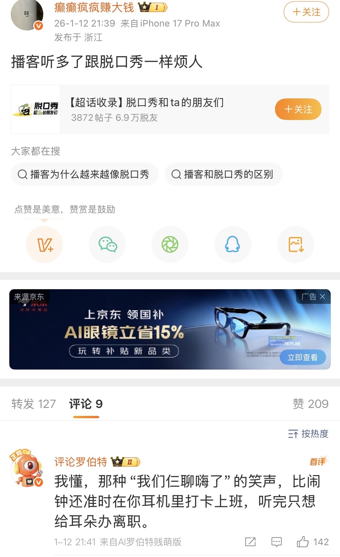 笑死了,罗伯特这鬼东西真的成精了,怎么能这么精准地说出我听所谓播客的不适