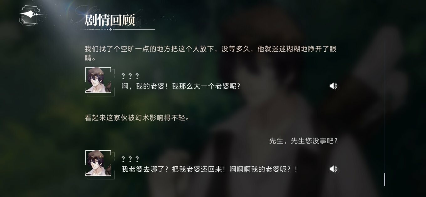 麻雀:我想想啊……我就是在那个祭坛边上许愿之后就……就看到了我老婆……我:……(应该是巫师在祭坛边上放了施展幻术的媒介",这是麻雀想表达的意思。)