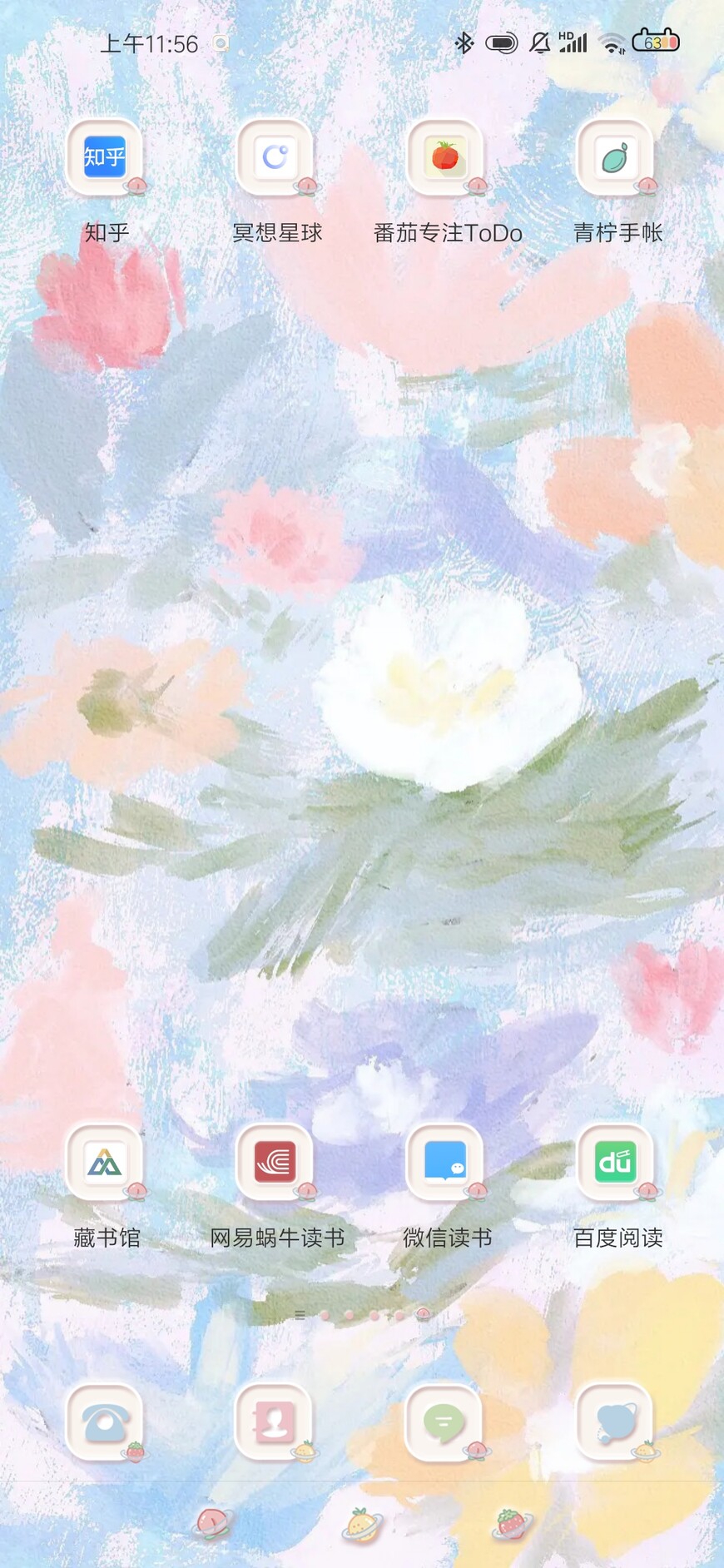 冥王星球上听春雨 下了番茄和青柠根本用不着,就是因为logo好看,知乎和微信读书。。