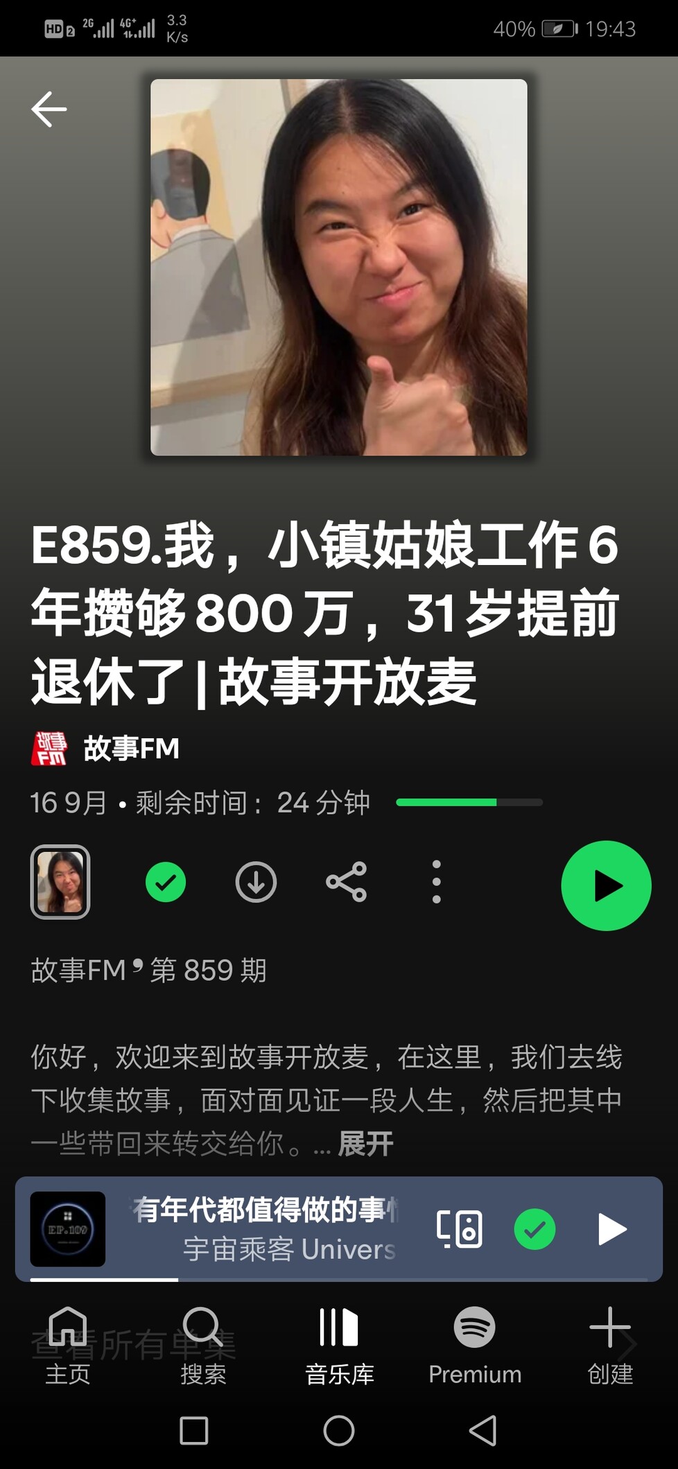昨天听了一个关于fire的节目,我之前有在豆瓣上大概了解一下这个概念,就是攒一笔钱,提前退休。如图,这个标题非常引人注目,所以我当时大概是抱着猎奇得心态把它加入我的播客单集。但是听了以后发现是讲fire的。我听了三个,都是非常厉害,非常有执行力的人,我很惊讶,因为我以为这样的事是我们这种活得比较蔫吧的人会想要去做的事。然后她们的共同点我认为是她们的工作令她们非常痛苦,有的是换了重病(是个大哥),有的是工作令人没有尊严(她在地中海豪华游轮上当船员,后来攒了三十万,在买了房子以后,还剩五万,去日本留学,现在当教日语的老师),还有的是工作的劳累以及无意义感。我的感悟是,人之所以想攒一笔钱从此不工作只生活,肯定是这个世界有太多工作令人无法好好生活。是这个世界出问题了。