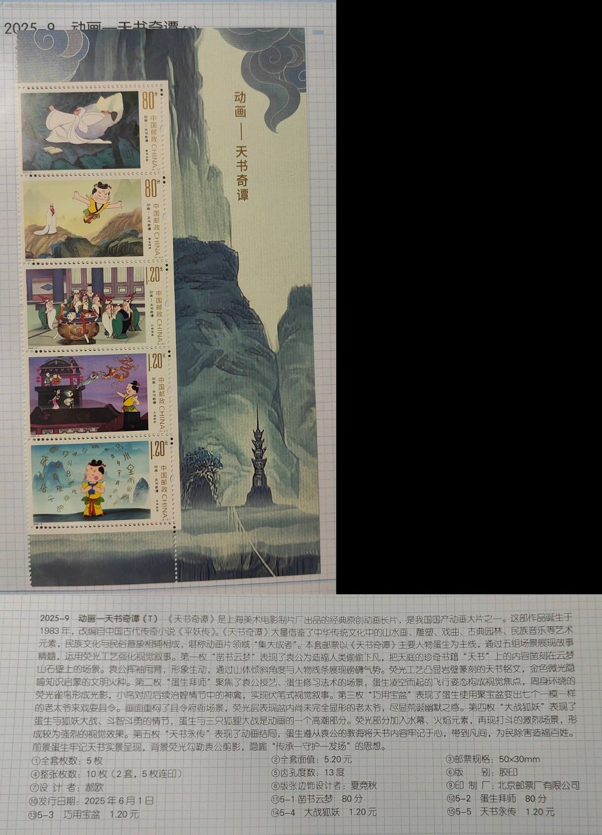2023 年的邮票介绍了《九色鹿》(见 1234.as/@zero/1121108548820872 ),2025 则介绍了一部动画长篇《天书奇谭》,在 b 站上也有,我打算找时间看一下: