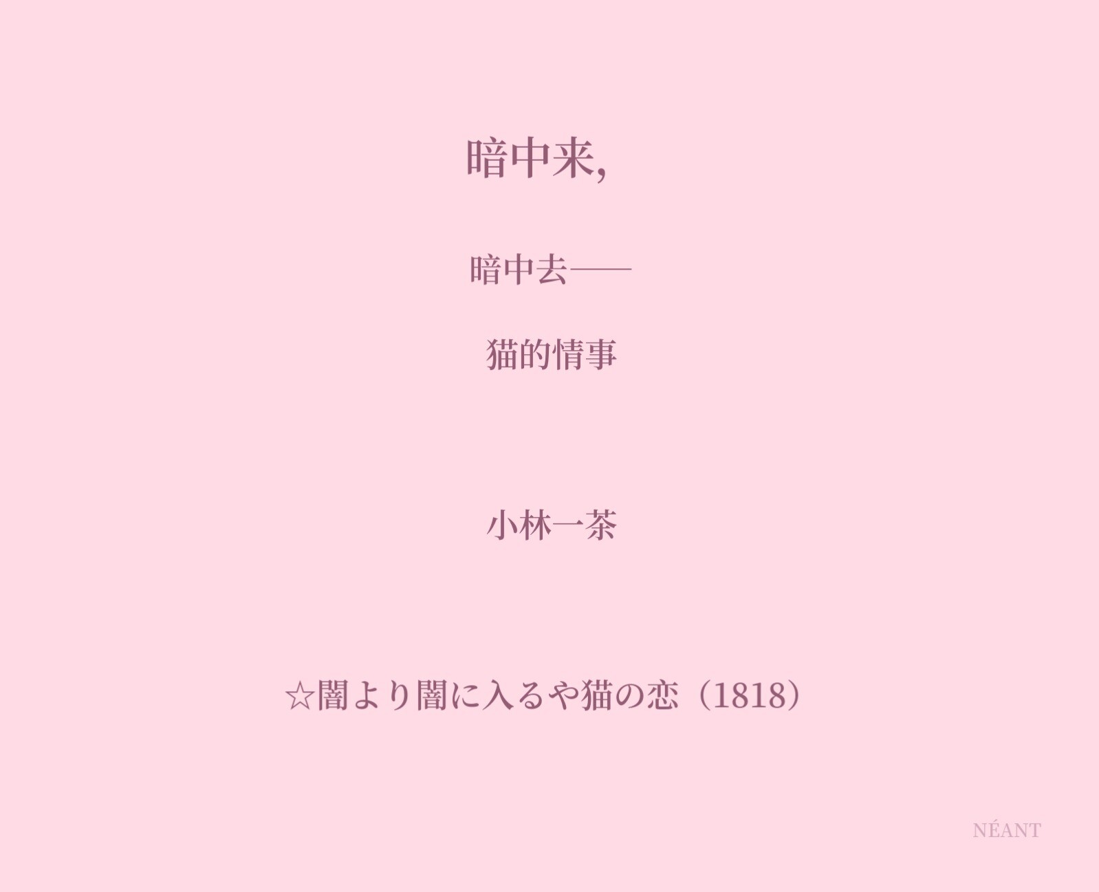 #小林一茶 ☆闇より闇に入るや猫の恋(1818)