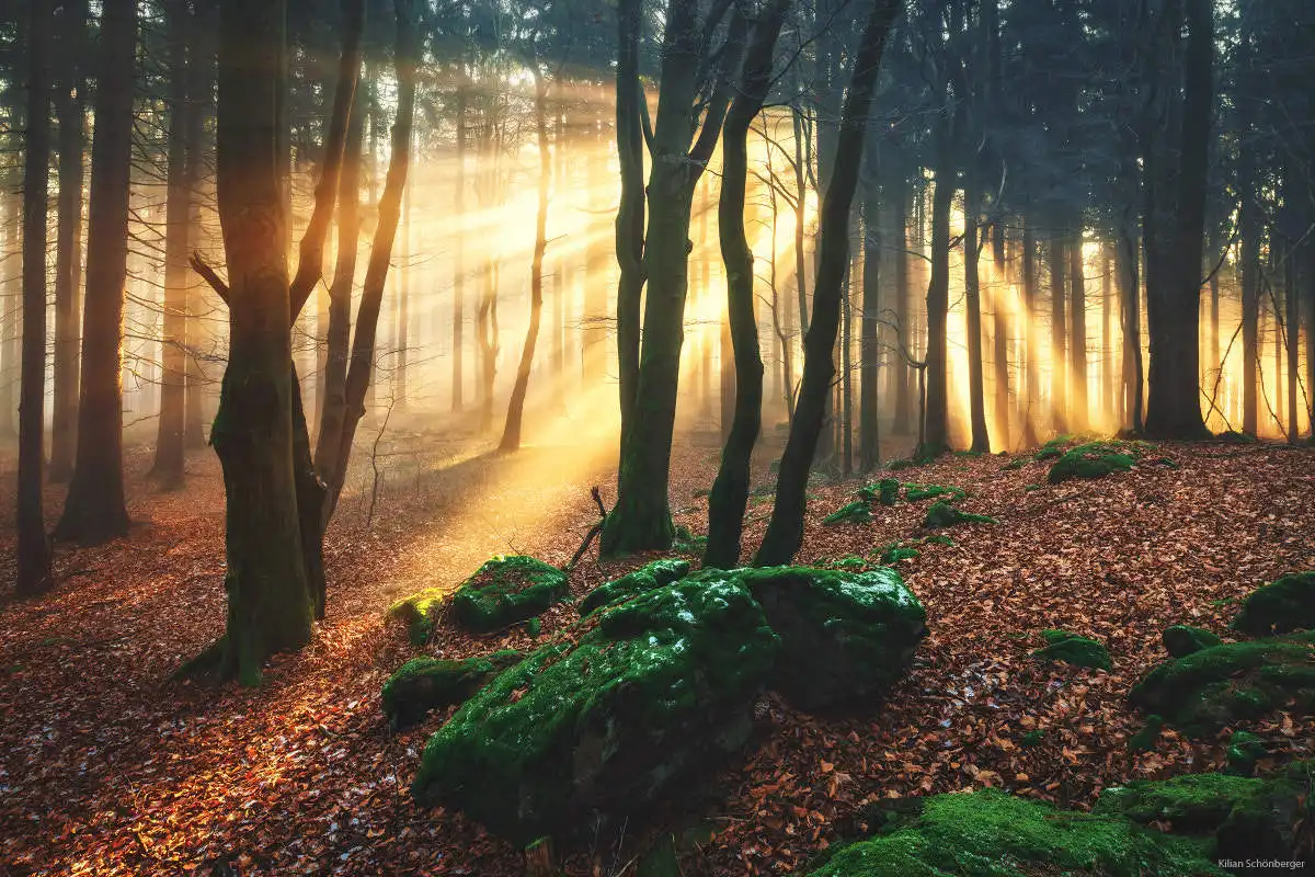 夕阳的光芒射入繁密的树丛,照亮了一片片树叶,仿佛倾注着金色的雨点。渐近昏暮的秋阳的光芒,渐次移动着脚步,眼看着对面明亮的树梢罩上了阴影,而眼前阴影中的树梢又一下子变得一片光明。